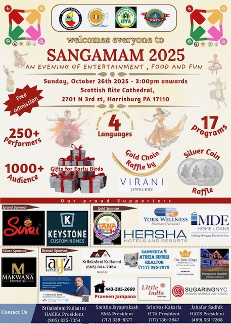 Harrisburg Telugu Association (HTA) of Pennsylvania is a non-profit cultural organization representing the Telugu speaking people from the states of Andhra Pradesh and Telangana, Southern India, residing in the greater Harrisburg of Pennsylvania. Initially, a small group of enthusiastic Telugu speaking people gathered on July 15 2002, to form HTA and never looked back since then. The strength of the Association is growing immensely with over 500 members/families as registered members. |